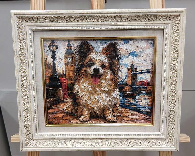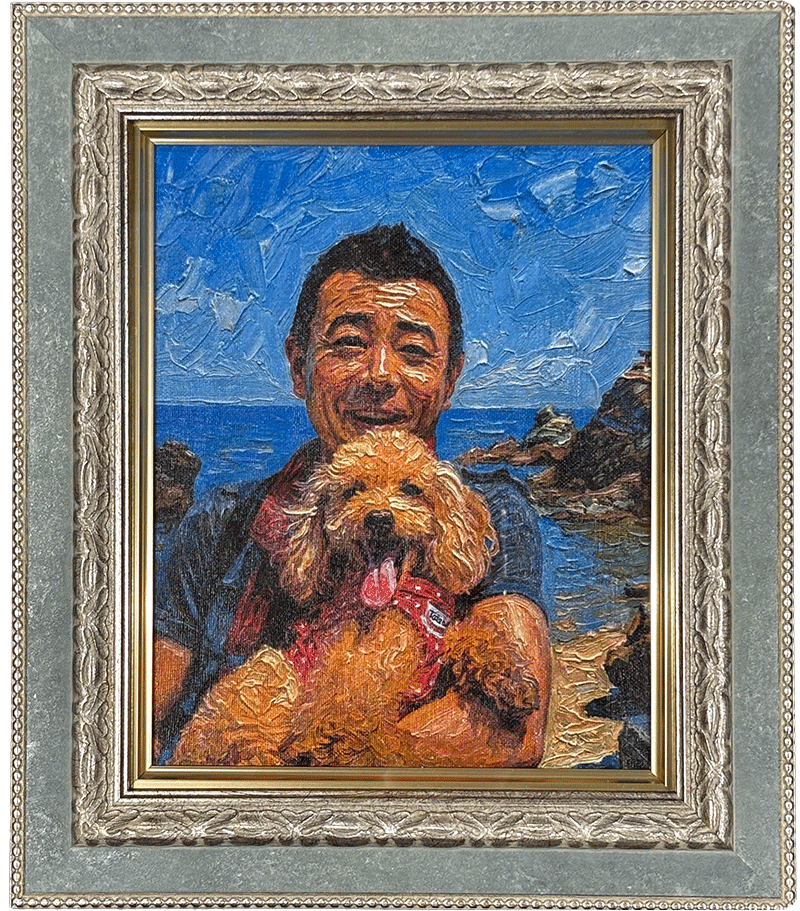 お手持ちのスマートフォンやカメラにある「お気に入りの一枚」を油絵のような重厚なアートに描きます。