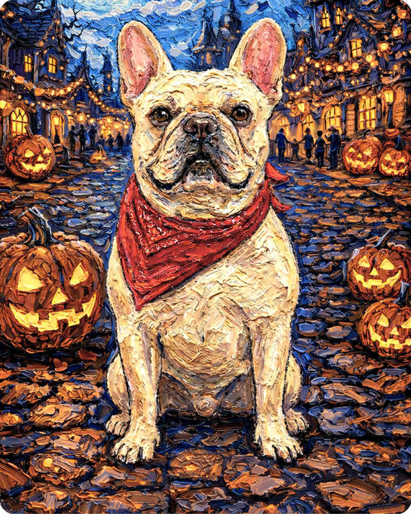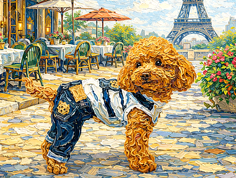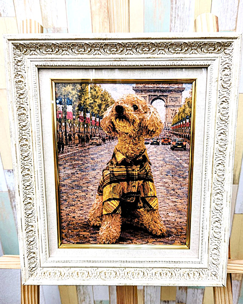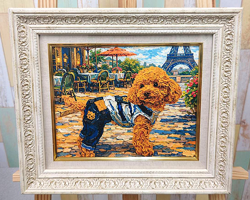 「フランスの街並み」を背景にしてペットの姿を描きます。