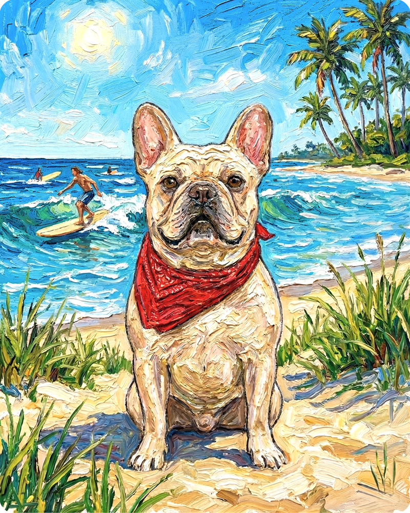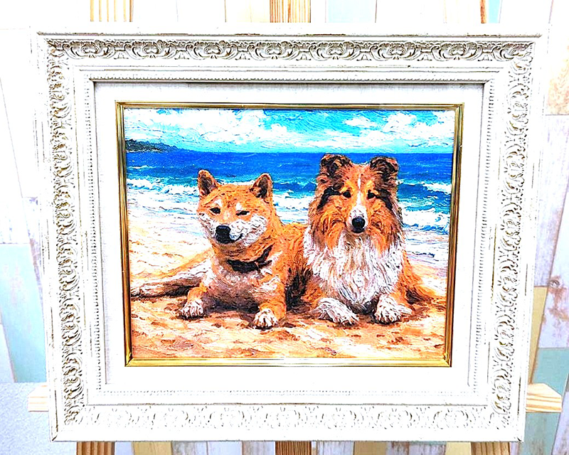 「海と砂浜」を背景にしてペットの姿を描きます。